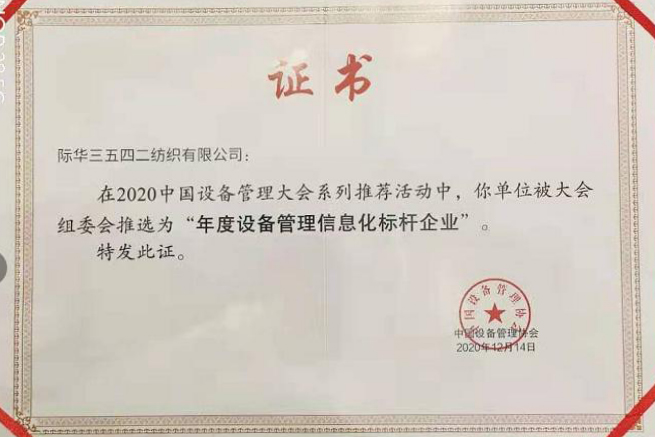 日前,际华3542公司凭借“基于两化深度融合的设备管理模式创新”这一课题,荣获中国设备管理协会颁发的“年度设备信息化管理标杆企业”。