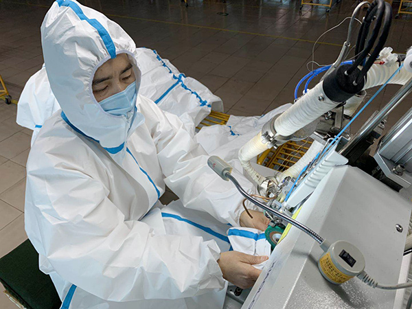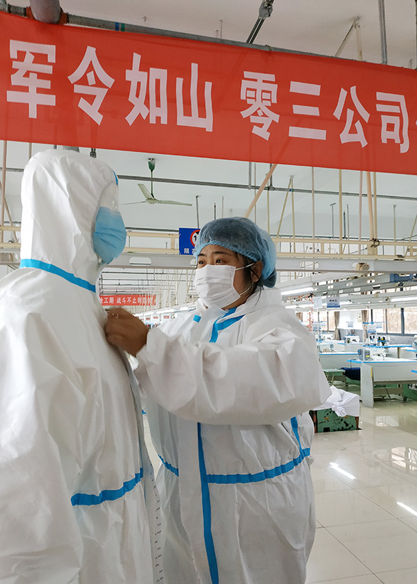 在这场没有硝烟的战争中,际华集团还有很多位“女战士”奋战在防护服生产的各个岗位上,尽自己所能为防控疫情贡献“际华力量”。