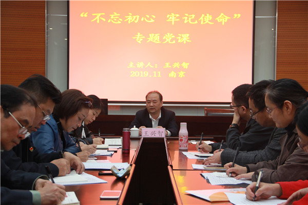 党委副书记王兴智于11月8日以《坚定理想信念 践行初心使命 在推动企业发展中展现新担当新作为》为主题,为南京地区3家企业的部分党支部书记和党务工作者讲授党课。王兴智深刻阐述了学习贯彻落实习近平新时代中国特色社会主义思想的重大意义。他指出,要坚定理想信念,守住初心勇担使命,深刻感悟“不忘初心、牢记使命”是激发共产党人前进的根本动力,是新时代共产党人的政治宣示,是际华企业创新发展的不竭源泉。他对南京片区企业提出,要提高政治站位,切实贯彻落实国企党建工作要求;要践行新发展理念,推动企业可持续发展;要激活企业发展内生动力,提高人工成本费用利润率;坚持以人民为中心的发展理念,在发展中不断提高职工的获得感和幸福感。