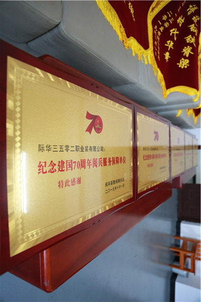 9月29日,阅兵联勤保障兵站向际华集团、际华3502、3513、3514、3515、3534公司赠送致谢牌匾。