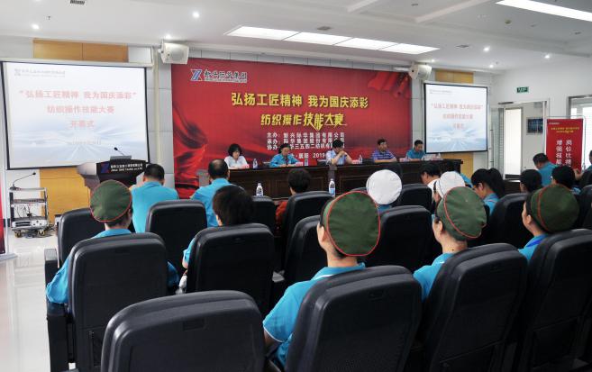 际华集团纺织操作技能竞赛暨职工(劳模)创新工作室现场交流会于9月20日-21日在湖北襄阳举办。中国纺织职工思想政治工作研究会秘书长姜国华到会致辞,新兴际华集团工会办公室副主任向诗国出席了会议。会上还特邀常山纺织集团工会主席邵光毅分享了如何做好培育劳模工匠的路径和建立劳模工作室的方法,邀请全国示范性劳模工匠人才创新工作室——常山纺织集团杨普创新工作室的带头人杨普到布机车间与班组长和生产骨干进行了现场交流,四个比赛工序组织了操作能手表演观摩。
