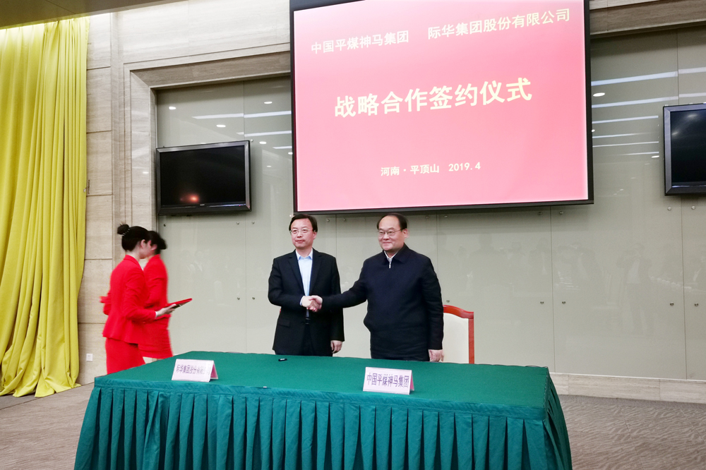 4月30日,际华集团与中国平煤神马集团战略合作协议签署仪式在中国平煤神马集团总部平顶山举行,际华集团总经理袁海黎与中国平煤神马集团总经理杜波签署合作协议。