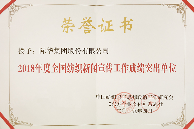 际华集团荣获“2018年度全国纺织新闻宣传工作成绩突出单位”荣誉