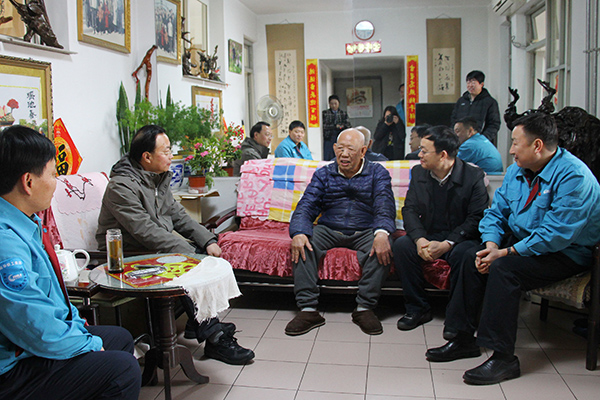 张同波一行走访慰问了离休老干部,与他促膝交谈,关切地询问他的身体健康状况、居住环境及家庭情况等,表达了组织的关怀挂念,并送上慰问金。