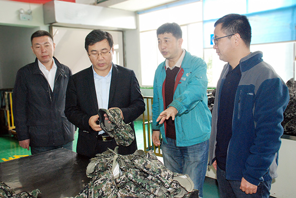 韩文虎一行具体了解了际华3537公司项目推进和生产、研发技改技革方面的情况,实地到生产线查看新产品生产情况。时值电商“双11”线上大促销活动前夜,韩文虎一行还到公司电商仓库了解备战情况。
