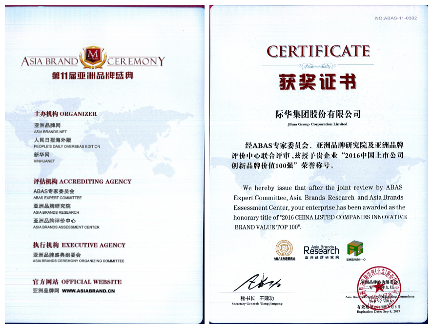 由亚洲品牌网、《人民日报》海外版、新华网共同主办的第11届亚洲品牌盛典于9月8日-10日在北京举行,会上发布了亚洲品牌研究院、亚洲品牌评价中心评估得出的2016年《中国上市公司创新品牌价值100强》榜单。际华集团以其在专业市场强大的品牌影响力、在资本市场上的优异表现以及持续的管理与技术创新,跻身榜单第39名,同时参与了亚洲品牌盛典“9.9中国品牌日”倡议行动。