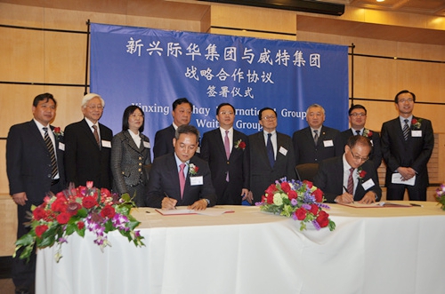 际华集团股份有限公司与美国威特集团《战略合作协议》签署仪式5月9日在美国威特集团纽约总部举行。际华集团股份有限公司董事长李学成和美国威特集团董事长兼首席执行官李学海分别在协议文本上签字,双方同意未来在房地产项目和服装贸易等多个领域展 开战略性合作。中国驻纽约总领馆商务参赞周善青、际华三五一三实业有限公司执行董事党委书记段银海、陕西际华园开发建设有限公司总经理侯增良、际华集团股份有限公司法律事务部部长黎国栋和北京丰诚投资咨询有限公司董事长王勇等社会各界嘉宾应邀出席。