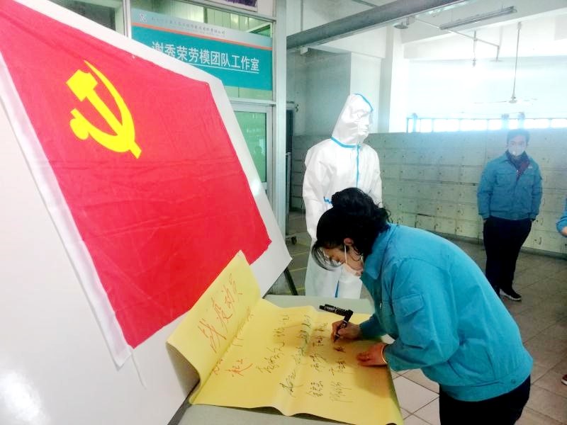际华5302车间分工会组织开展了“疫情当前、首冲有我”的劳动竞赛,不断提高生产潜能,日产由2000套迅速提高到5000套,同时在竞赛中严把生产质量,前后安排了多个质量控制点,严格每道工序质量。