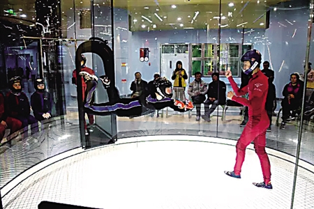 室内风洞跳伞:第一次体验飞行的朋友一定要在专业教练的指导下,进行大约15分钟的地面飞行培训。价格:200元/2分钟。