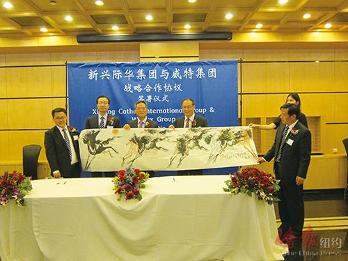 【侨报纽约讯】5月9日,中国际华集团股份有限公司与美国威特集团在美国威特集团纽约总部签署了《战略合作协议》,双方拟在“际华园”项目、服装贸易业务等方面开展相关合作,并将通过开展高层会晤和建立项目联络小组的方式,共同推进合作项目的顺利开展。