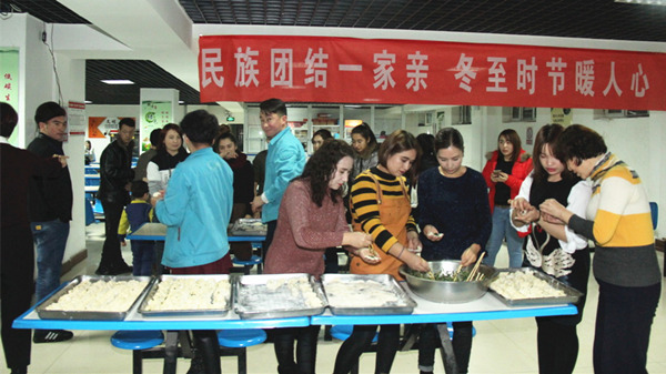 冬至是二十四节气中的重要节气,俗话说“冬至不端饺子碗,冻掉耳朵没人管”。为了进一步增进各民族之间的感情,切实感受传统文化的氛围,12月22日晚,际华7555公司200余名不同民族干部职工相聚在职工餐厅里以“民族团结一家亲,冬至时节暖人心”为主题开展了包饺子、过冬至活动。整个活动现场,各族干部职工脸上满是开心的笑容,欢乐祥和的气氛洋溢整个餐厅。
