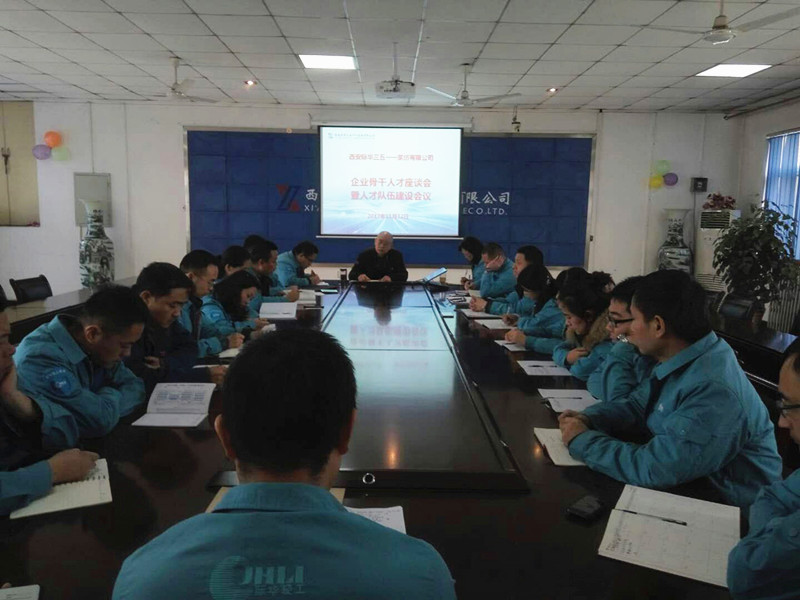 11月22日上午10点,西安际华三五一一家纺有限公司在二楼会议室召开企业骨干人才座谈会暨人才队伍建设会议。公司党委书记、执行董事董宏刚、党委委员、纪委书记、工会主席白晓风、人力资源部长、党群部长等出席了会议,会议由公司党委书记董宏刚书记主持,21名青年骨干及青年员工参加了这次座谈会。本次旨在认真听取青年骨干及员工对于公司现状的分析和发展建议,促进大家相互沟通交流,对公司制定人才队伍建设和培养发展机制具有重要意义,有利于公司制定人才战略促进青年骨干及员工成长进步。