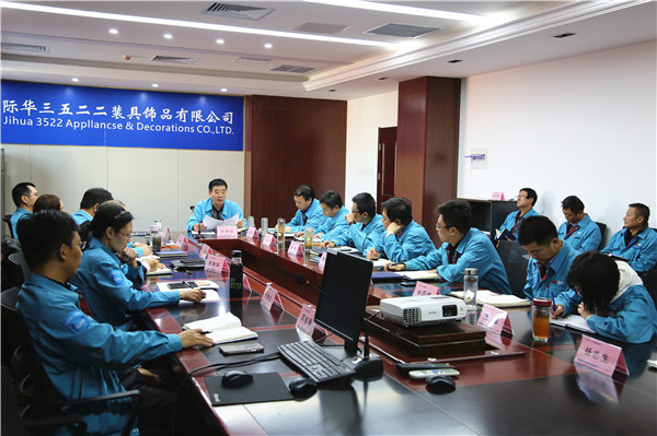 11月13日下午,际华3522公司召开党委中心组学习扩大会,对学习宣传贯彻党的十九大精神和集团党委书记奚国华同志在集团公司2017年经济活动分析暨2018年预算动员会,以及集团公司党委工作例会上的讲话精神进行再学习、再动员。党委理论学习中心组成员、各单位中层一把手参加会议。
