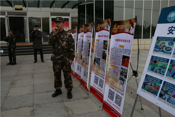 活动开始前各消防安全重点单位准备了消防知识展牌整齐的摆放在广场上。活动开始后大家在消防大队讲解员的带领下观摩学习。消防大队设置消防宣传车和消防体验区,讲解了包括用电安全知识、消防栓及消防带的使用方法、以及在突发火灾事故中如何自救和逃生的技巧等消防知识。随后观看了几起火灾案例。消防官兵为各单位发放消防宣传手册,宣传火灾的危害性,多层次、全方位地普及消防安全知识。