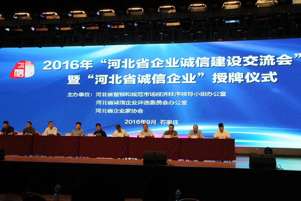 3514公司获2016年“河北省诚信企业”荣誉称号