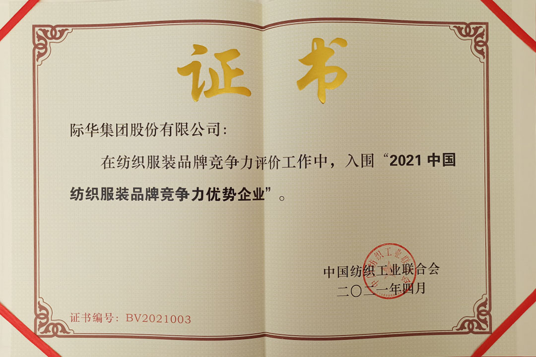 际华股份荣获“2021中国纺织服装品牌竞争力优势企业”称号