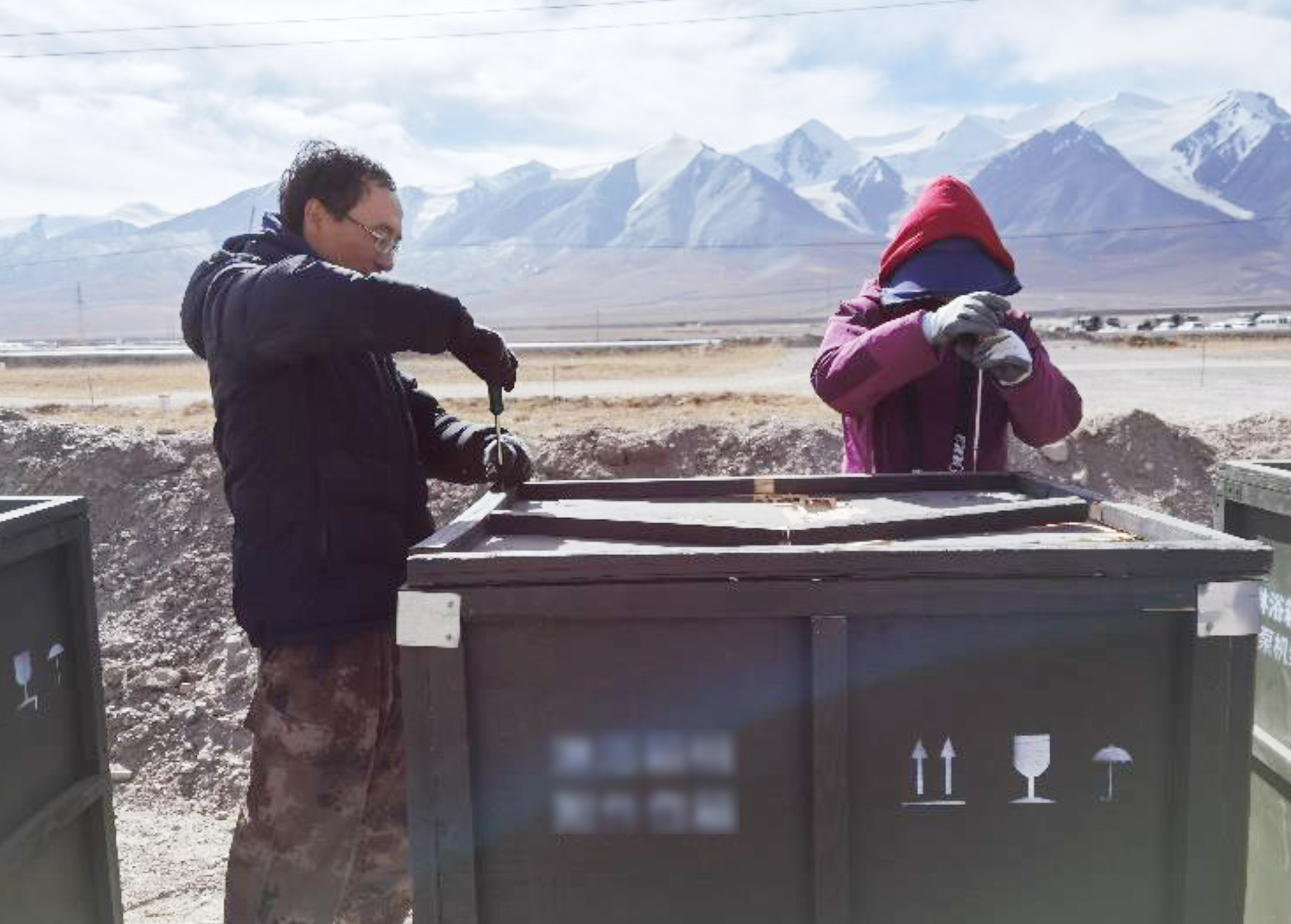 ▲杨雷(左)在高原地区做产品试验