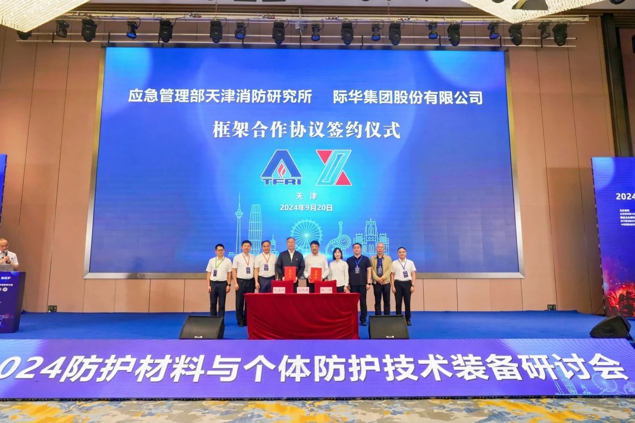 为进一步加强个体防护装备领域产研协作攻关,9月20日上午,际华集团股份有限公司与应急管理部天津消防研究所在天津举行框架合作协议签约仪式。际华集团股份有限公司党委书记、董事长夏前军,应急管理部天津消防研究所党委书记宋波,以及双方代表出席活动。际华集团股份有限公司研究总院院长杨玲和应急管理部天津消防研究所科技处处长李晋代表双方共同签署了框架合作协议。