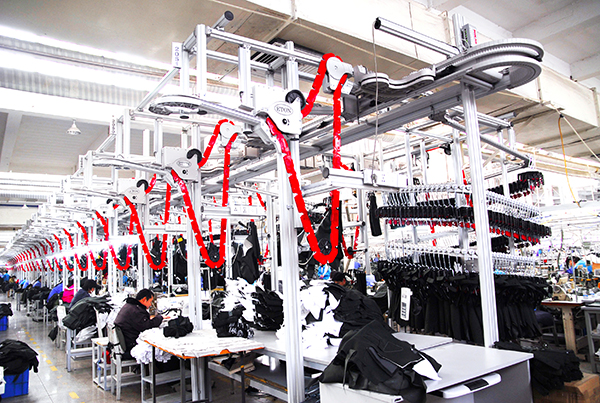 在生产组织中,际华3502公司使用了大量的模板和运模机,保证了2万多套件服装同一部位制作统一。一分厂使用了勾前门模板和自动运模机,以前需要4个人完成的工序,现在一个人可以操作左右两台自动运模机。