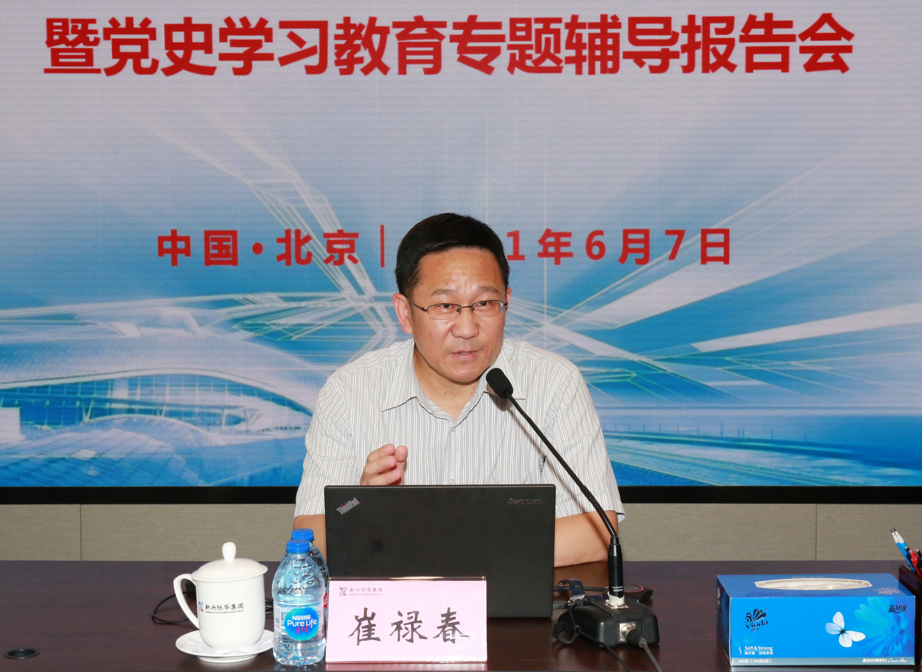 6月7日下午,新兴际华集团召开党委理论学习中心组集体学习(扩大)会暨党史学习教育专题辅导报告会。中央党校(国家行政学院)教授,博士生导师崔禄春作辅导报告。集团领导贾世瑞、吴同兴、王兆刚、荣岩、徐建华出席会议。集团公司党委常委、副总经理鲁斌主持会议。