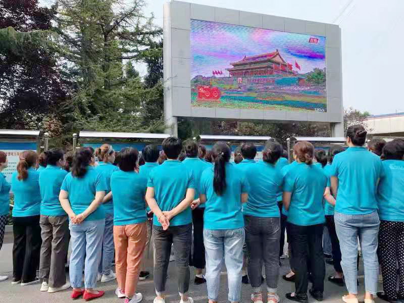 际华3543职工自发在厂区电子屏前收听观看直播