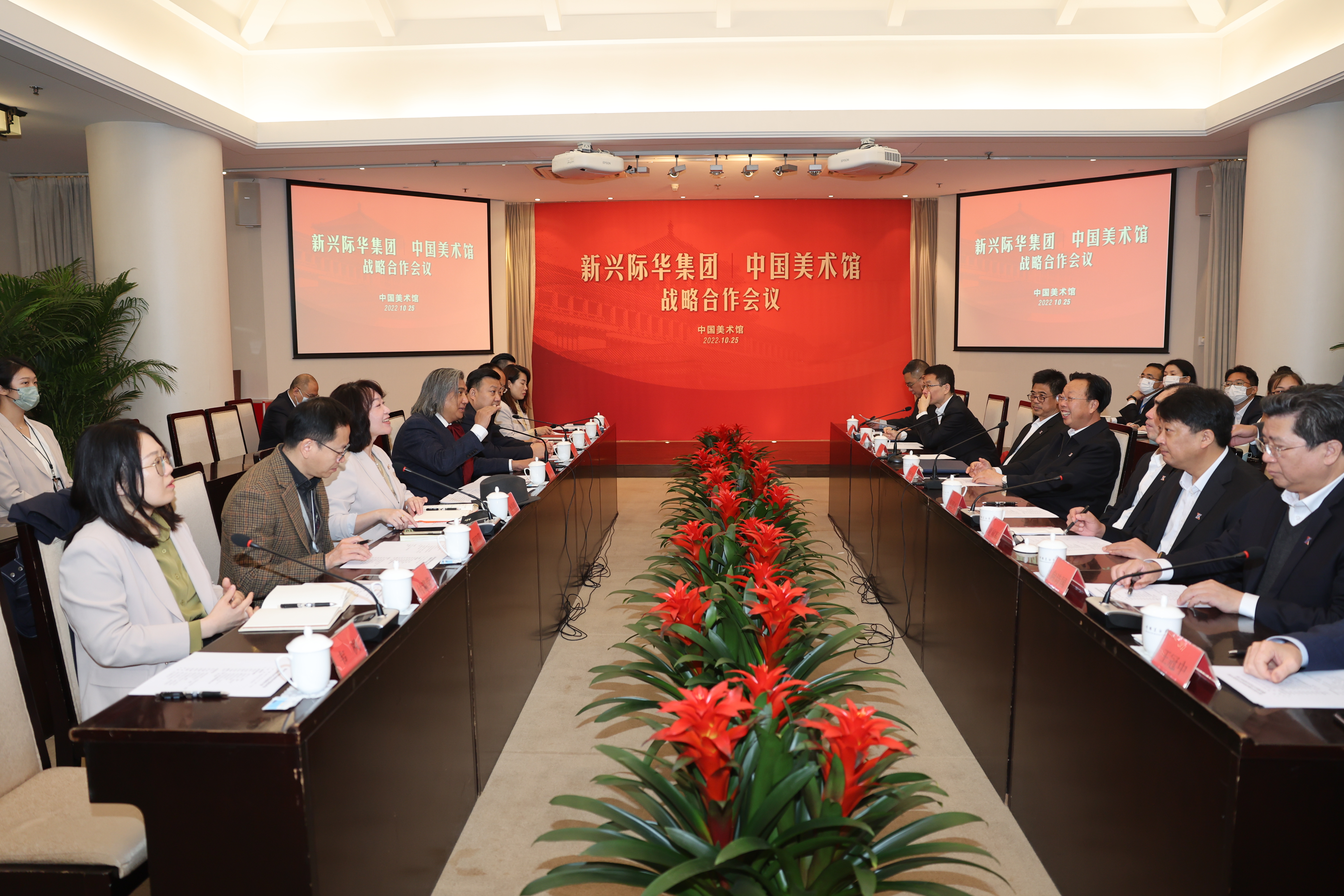 吴为山对新兴际华集团一行的到访表示欢迎。他表示,作为中国唯一的国家造型艺术博物馆,中国美术馆承载着研究历史文化之美、创造改革创新之美、抒写社会主义建设之美的使命责任。新兴际华集团拥有深厚的红色基因和军旅文化,希望双方增进交流合作,共同搭建艺术与文化传播的桥梁,让艺术美学进入到生产工作和百姓生活中,推动实现文化产业与文化事业“双业”并举、灿烂绽放。