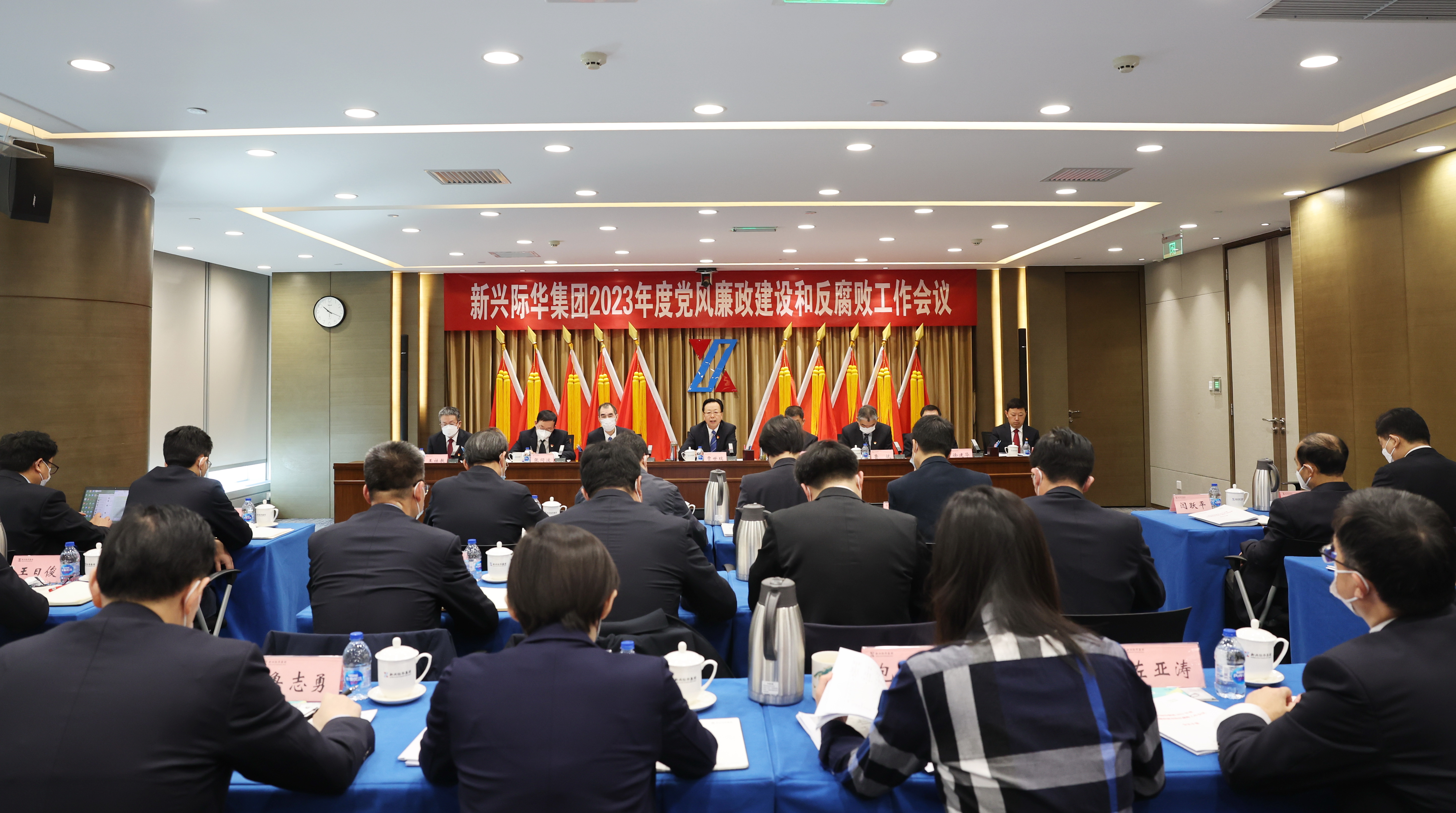 2月8日,为深入贯彻党的二十大精神,落实二十届中央纪委二次全会部署与国资委党风廉政建设和反腐败工作会议暨警示教育大会要求,推进全面从严治党向纵深发展,新兴际华集团在京召开2023年度党风廉政建设和反腐败工作会议。集团党委书记、董事长贾世瑞出席会议并讲话。党委副书记、董事、总经理杨旭主持会议。党委副书记、董事吴同兴传达上级会议精神。集团党委常委、纪委书记陈一军作纪委工作报告。集团领导班子成员出席会议。