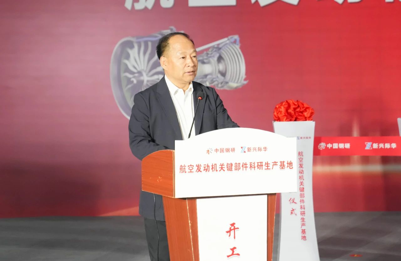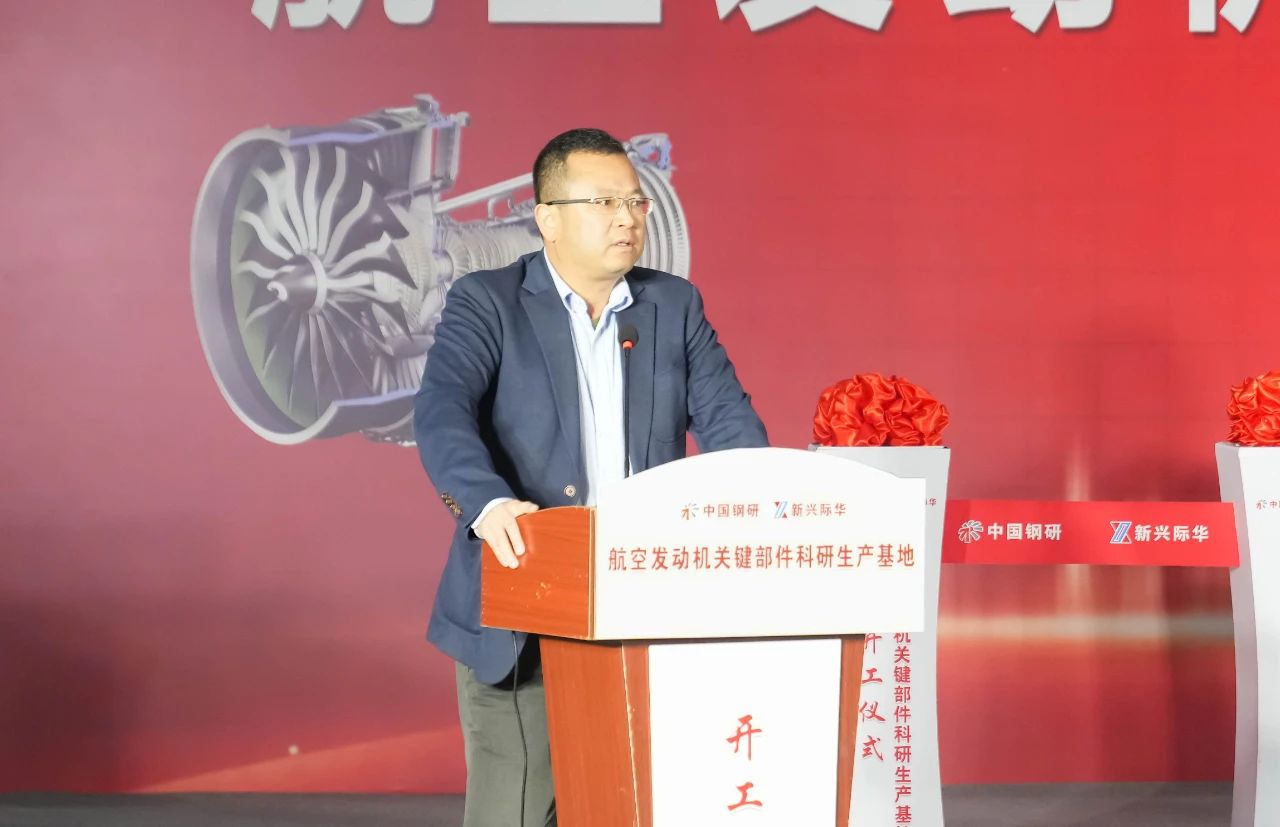 中国钢研钢铁研究总院党委书记、总经理梁剑雄主持开工仪式,并宣布航空发动机关键部件科研生产基地开工。