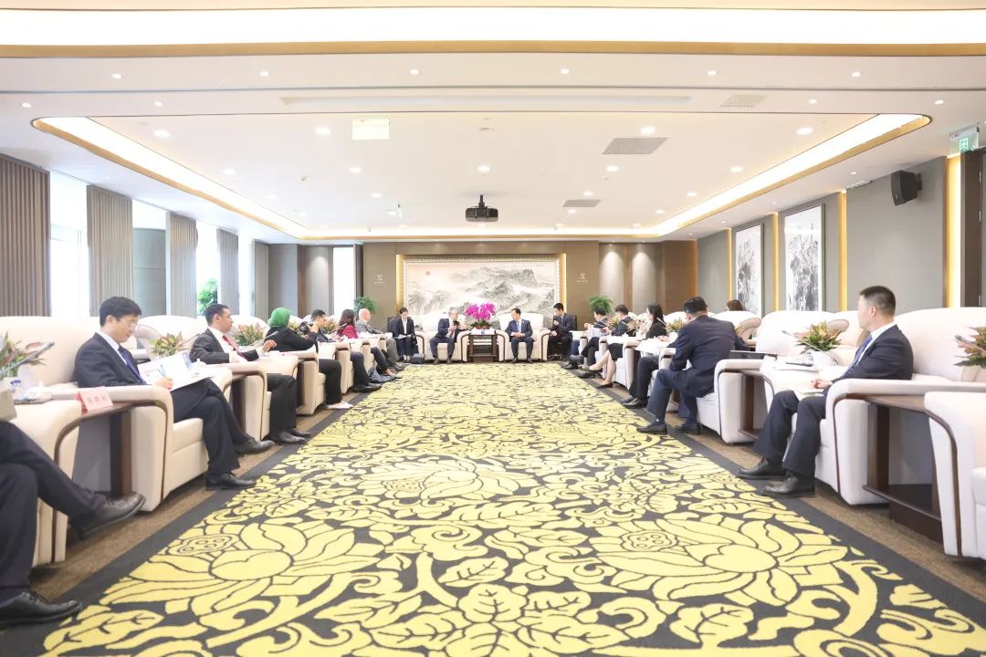 贾世瑞欢迎瓦利德·加梅尔·拉丁一行到访新兴际华集团,感谢埃及政府和埃及苏伊士运河经济区给予集团公司的关心和支持,介绍了新兴际华集团的基本情况、业务布局及未来在埃及业务拓展的方向。贾世瑞表示,近年来,在两国元首的亲自擘画和引领下,中埃全面战略伙伴关系高水平运行,务实合作成果丰硕。新兴际华集团作为中央企业,积极践行“一带一路”倡议,发挥自身优势,在球墨铸铁管、钢材等领域不断加强与埃及企业合作。贾世瑞指出,埃及作为“一带一路”的重要节点,具备良好的营商环境,新兴际华集团高度重视相关投资机会,后续将围绕在埃及的业务拓展进行充分论证,推动双方深度合作。