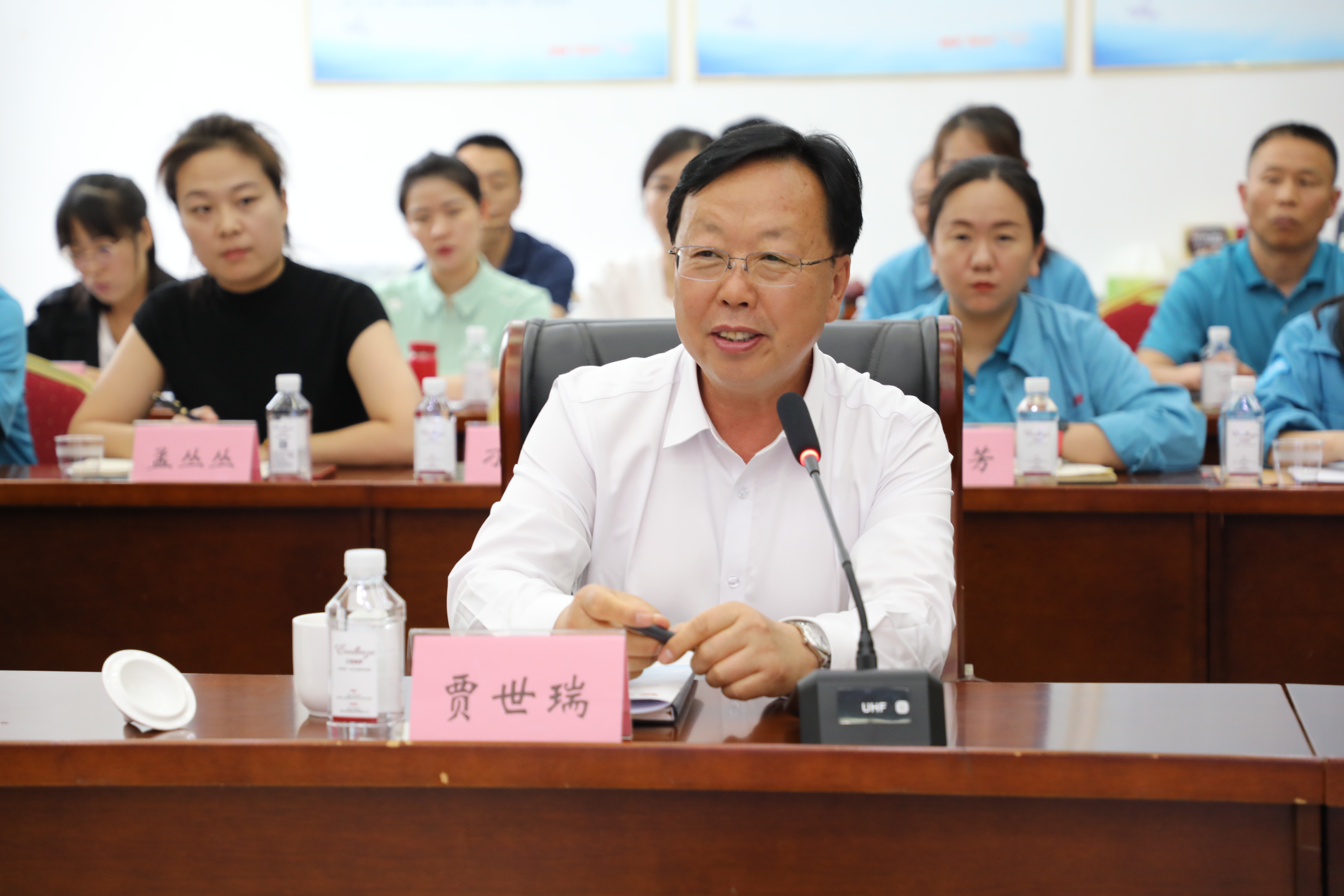 论坛开幕前,贾世瑞与漯河市委书记秦保强座谈。漯河市委副书记、市长黄钫,市委常委、市委秘书长周新鹤,副市长周剑参加座谈。