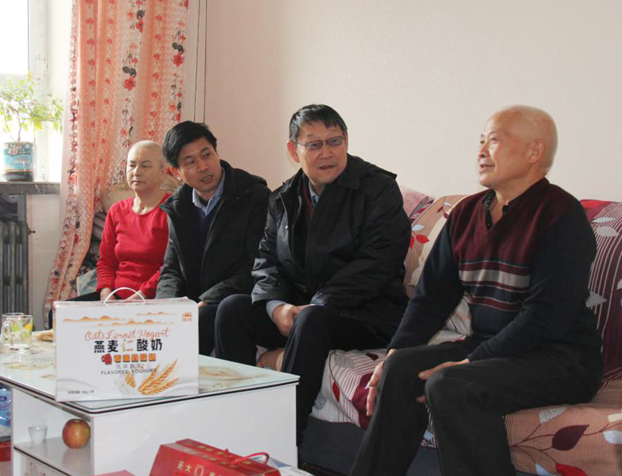 杨彬走访慰问了际华7555公司退休职工杨昌登,来到他家中,关切地询问身体健康状况、经济收入和生活情况,鼓励他继续支持公司工作,并送上集团慰问金和慰问品。