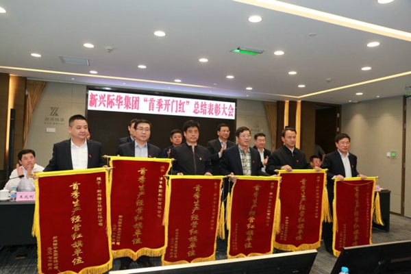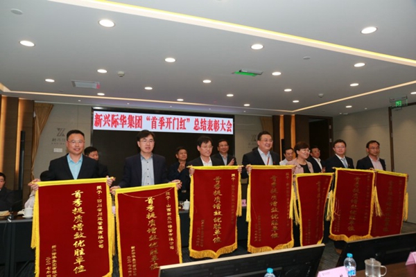 会议通报表彰了集团公司一季度生产经营红旗单位和提质增效优胜单位,并对红旗单位和优胜单位分别颁发了锦旗。